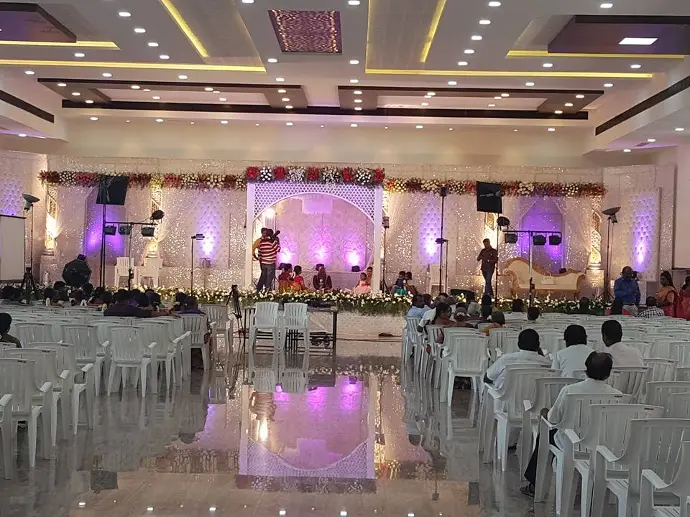 The VKS Kathirvel Mahal Kumarapalayam is one of the Landmark Located In Salem bye-pass road in Kumarapalayam City, Project by VKS Group and with a team of Family members involved in this project to built a Great Landmark with 1200's of seating capacity, fully air conditioned with all amendeties of large car parking, buffet & dinning halls,
